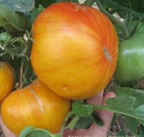 Высокорослый, среднеспелый сорт сорт с картофельным листом. Плоды плоскоокругдые, очень нарядные, розово-зелено-желтые. Вес 200-400 грамм. Сладкие и очень вкусные.