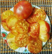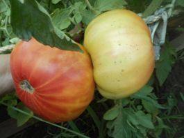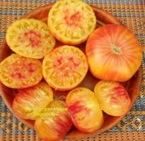 Желто-розовый бабушки Виней (Grandma Viney’s Yellow and Pink, США) Среднепоздние, биколор, желтый с розовым, плоды плоскоокруглые, 400-600 грамм, сладкие, вкусные, без кислоты.