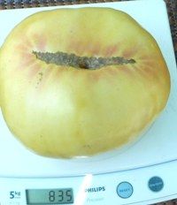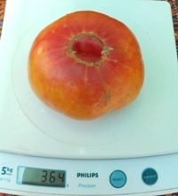 Ипотечный лефте (Mortgage Lifter, США) Индет, среднеспелый. Плоды плоскоокруглые, желто-оранжевого цвета, с красной шапочкой и размытыми пятнами, в полной спелости становится почти красным. Вес был до 400 грамм. Очень хорошего вкуса.