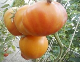 Оранжевый орангутан (Orange Orangutan) , индетерминантный, среднеспелый сорт. Плоды- биколоры, оранжевые с красным. Вес 200-300 грамм, на первой кисти были покрупнее. Салатный сорт. Сладкие, мясистые, очень вкусные.