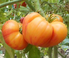 Деревенский (HILBILLY) Индет, до 2х метров, среднепоздний сорт. Плоды желто-красные, округлые, мясистые, сладкие, вес 300-400 грамм. Салатный.