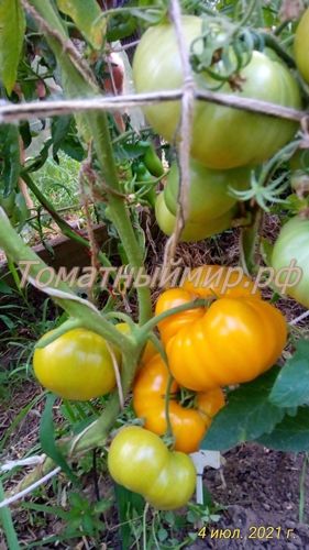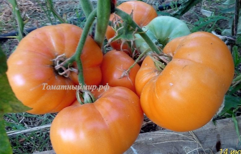 Высокорослый, среднеспелый сорт. Плоды плоскоокруглые абрикосового цвета, массой 300-400 гр. Очень хороший вкус типа брендивайн, мякоть кремообразная, сладкая, сочная. В упак. 10 штук