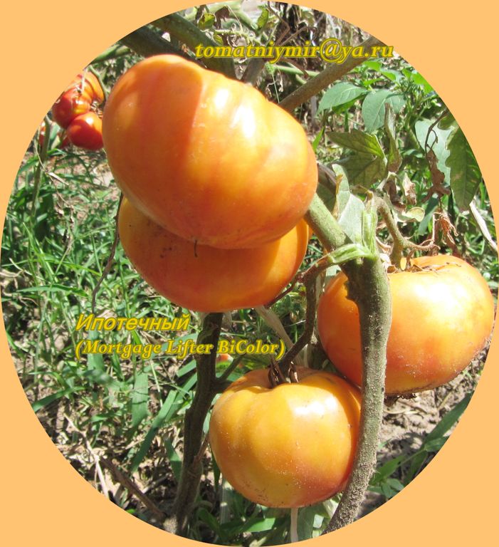 Индет, среднеспелый. Плоды плоскоокруглые, желто-оранжевого цвета, с красной шапочкой и размытыми пятнами, в полной спелости становится почти красным. Вес был до 400 грамм. Очень хорошего вкуса. В пакете 10 штук.