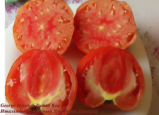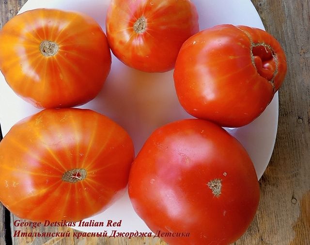 Высокорослый, среднеспелый сорт. Плоды плоскоокруглые, с небольшой ребристостью, красного цвета., мясистые, с плотной мякотью..Вкус очень хороший, ароматные. сладкие.. Устойчивы к растрескиванию. Вес 300-500 грамм. Очень вкусный салатный сорт. В упак. 10 шт.