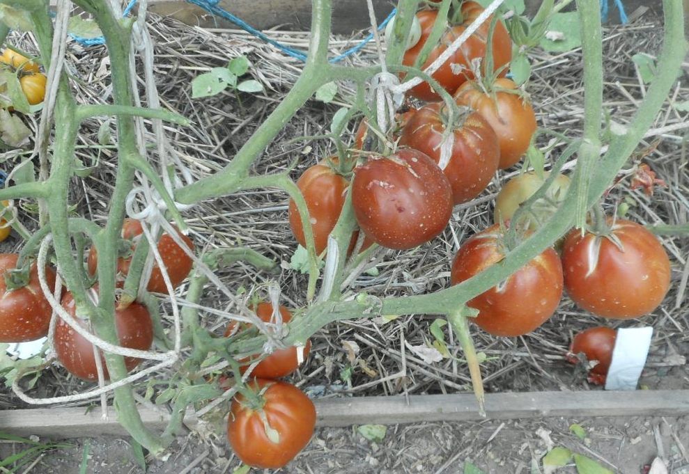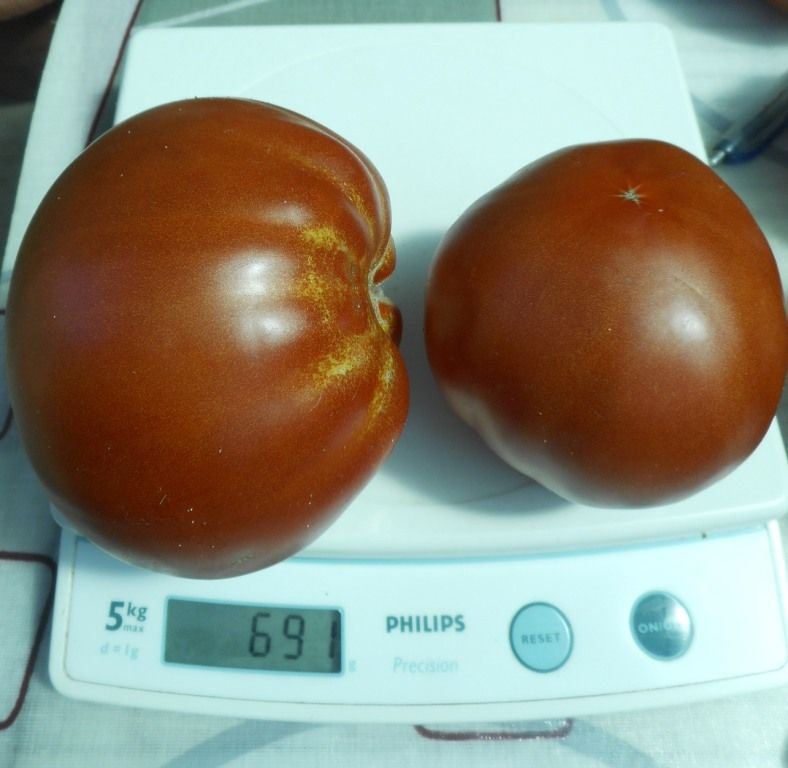 Очень высокорослый раскидистый куст, среднеспелый сорт. Плоды слегка ребристые, в форме мешочка, внутри мясистые, сладкие, без кислоты. Урожайный и долго плодоносящий. Отлично подойдет для салатов и на заготовки, густые соки, пасту.