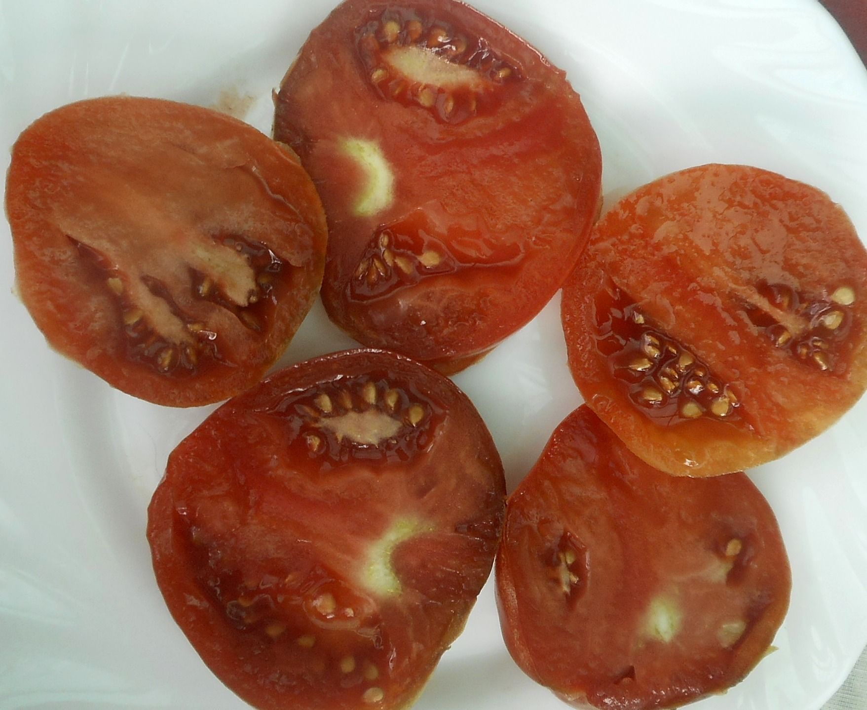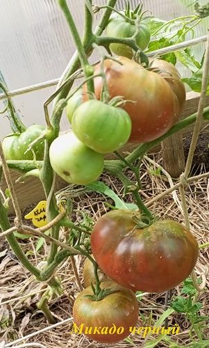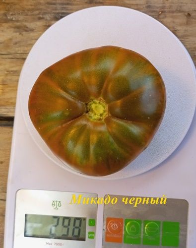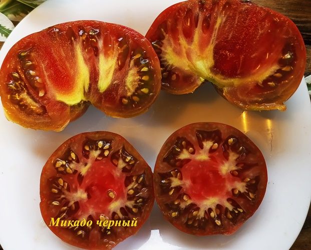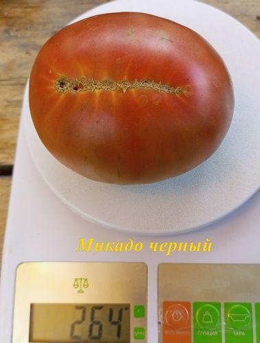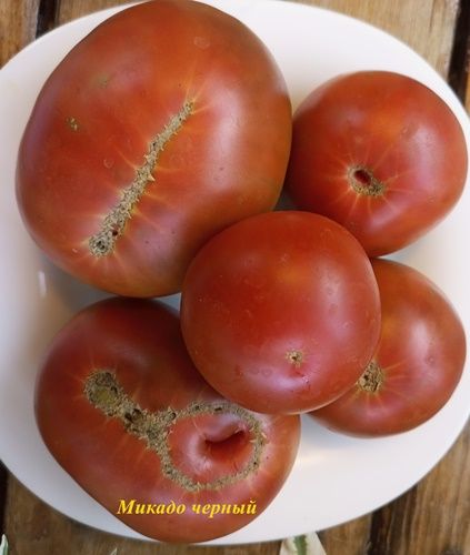 Среднеспелый сорт, высота куста в ОГ была около 1 метра, куст крепкий, лист картофельный. Плоды плоскоокруглые, темно-бордовые, вкус сахаристый, с небольшой кислинкой. Вес 200-400 грамм. Вкусный салатный сорт. В упак. 10 шт.