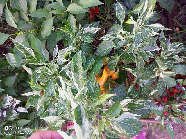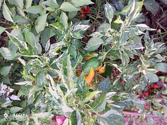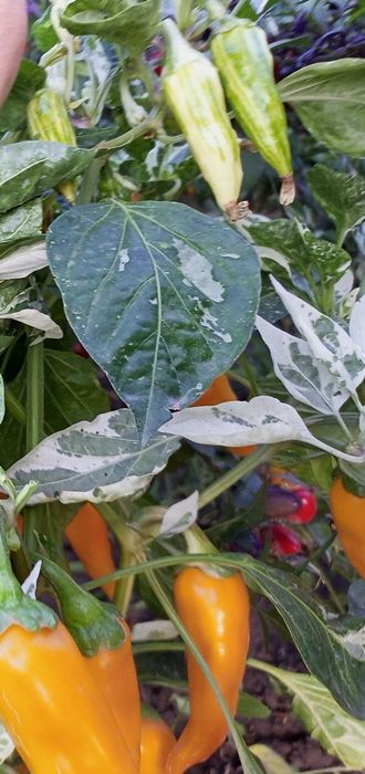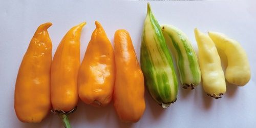 Сорт перца вида Capsicum annuum, среднеспелый, куст высотой до 60 см, лист зеленый с белыми пятнами. Плоды в технической спелости кремово-белые, потом становятся светло-зеленые с темно-зелеными полосками, затем желто-оранжевые. Острота увеличивается по мере созревания. В упак. 12 шт.