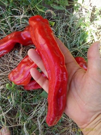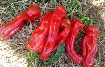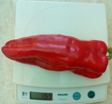 Среднеспелый сорт, высота куста 70-80 см. Плоды удлиненно-конусовидной формы, длиной до 25 см, красного цвета, сладкие. Вес 150-200 грамм. Очень урожайный. В упак. 12 шт.