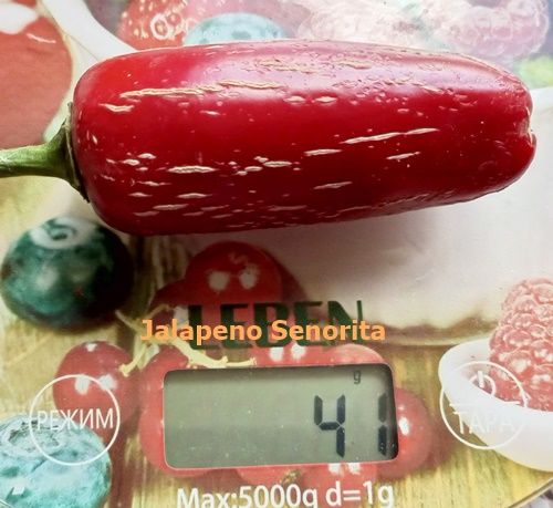 Слабоострый сорт халапеньо, острота до 1000 сковиллов. Куст высотой около 0,7 метра, срок вегетации при выращивании в теплице 130-140 дней, в ОГ недели на 2 больше. Плоды красного цвета, с трещинками, вес 30-50 грамм. Используется для свежего потребления, фаршировки, маринования. В упак. 12 шт.