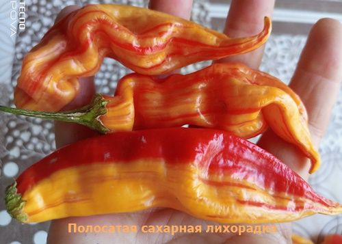 Описание с Чесночной фермы Острый перец Sugar rush stripely c. baccatum