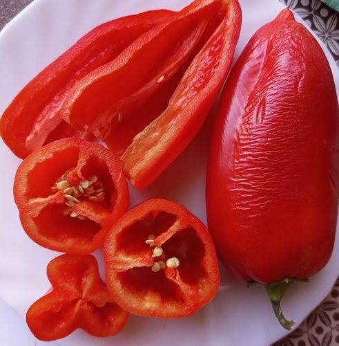 Среднеранний, урожайный сорт, куст высотой до 0,8 метра. Плоды конические, красного цвета, длиной 12- 15 см, вес до 100-150 грамм, толщина стенок 6-7 мм.