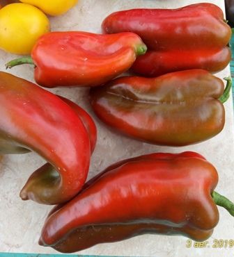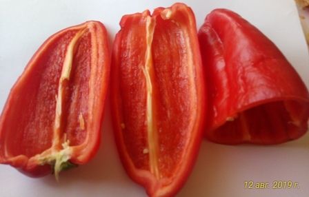 Среднеранний сорт, высота куста около 70 см. Плоды конусовидные, красные, стенка толщиной 5-6 мм. Сладкие, сочные. В упак. 10 шт.