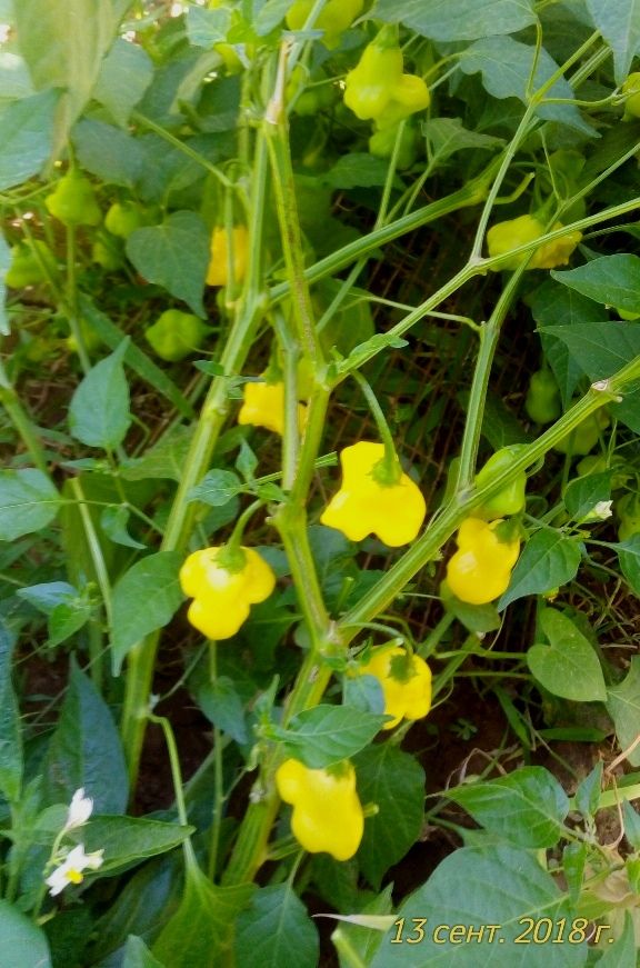 Сорт перца вида C. baccatum. Куст высотой 1,2 - 1,5 метра. Плоды колокольчики бледно-желтого цвета, массой 25-30 г созревают через 105-115 дней от всходов. Стенки колокольчика слабо-острые, но семена и перегородки очень острые. Мякоть сочная, с фруктовым ароматом. Урожайный. В упак. 15 шт.