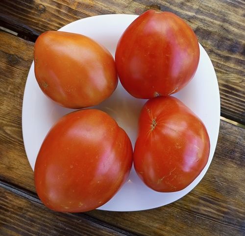 Индетерминантный среднеранний высокоурожайный сорт. Плоды сердцевидные вытянутые, красного цвета, весом от 200 до 400 грамм. Мякоть сочная, сладкая, мясистая. Сорт салатный и для переработки на сок, соусы, пасту. В упак. 10 шт.