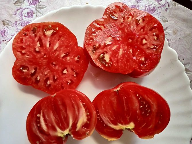 Индет, среднеспелый. Плоды малиново-розовые, плоскоокруглые, плотные, мясистые, 250-500 грамм. Вкус приятный, со сладостью и небольшой кислинкой. Салатный сорт. В упак. 10 шт.