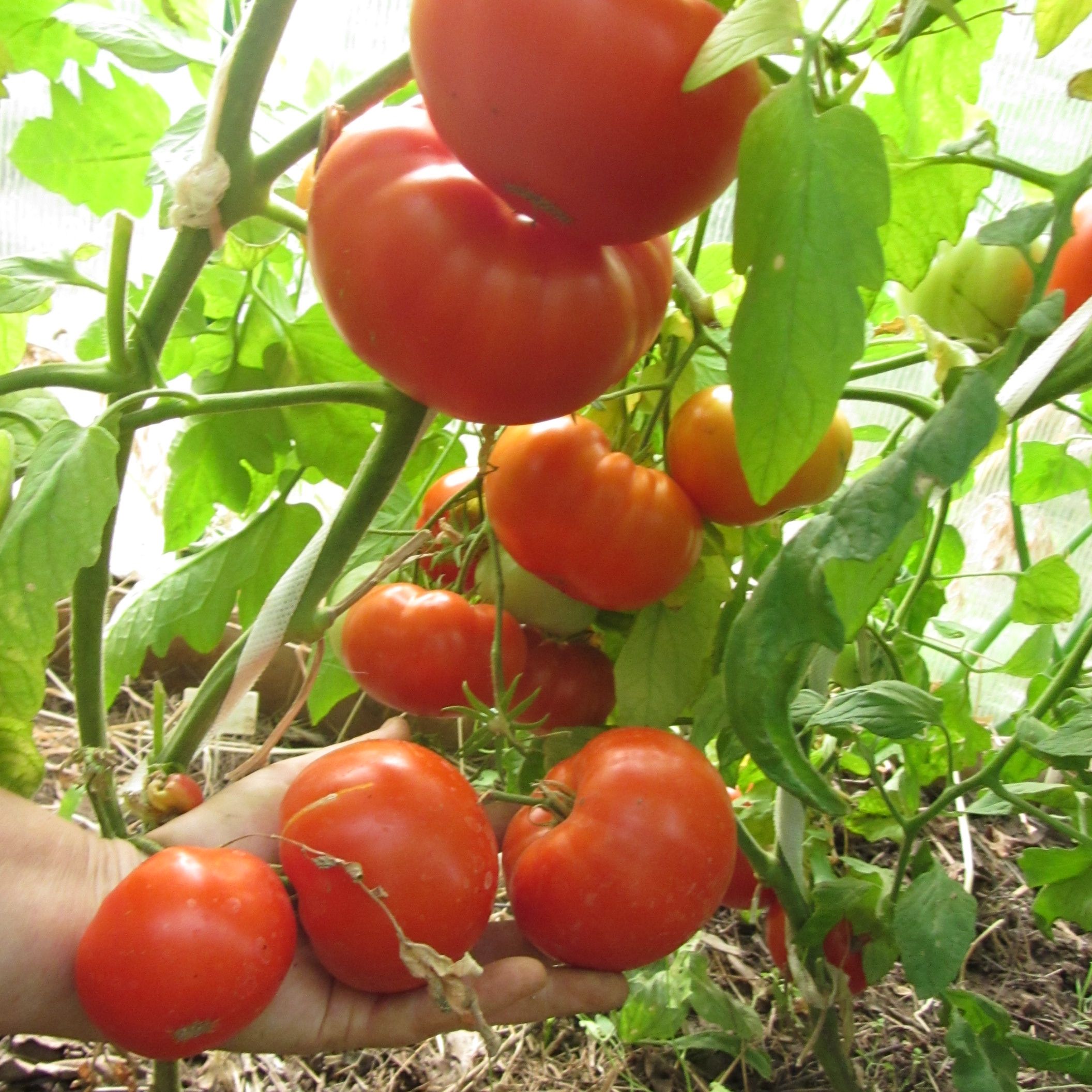 Индет, среднеспелый. Плоды округлые, ярко-красные, блестящие, красивые, мясистые, сладкие, кислоты совсем мало, плотные. Вес около 300 грамм. Урожайные. В упак. 10 шт.