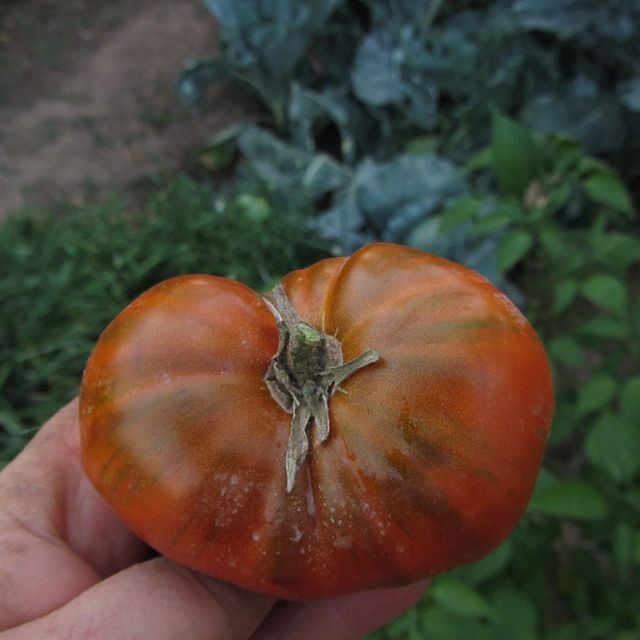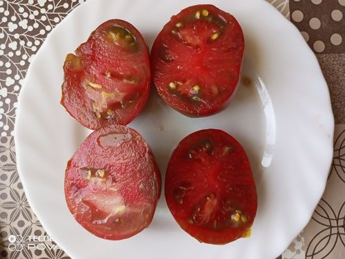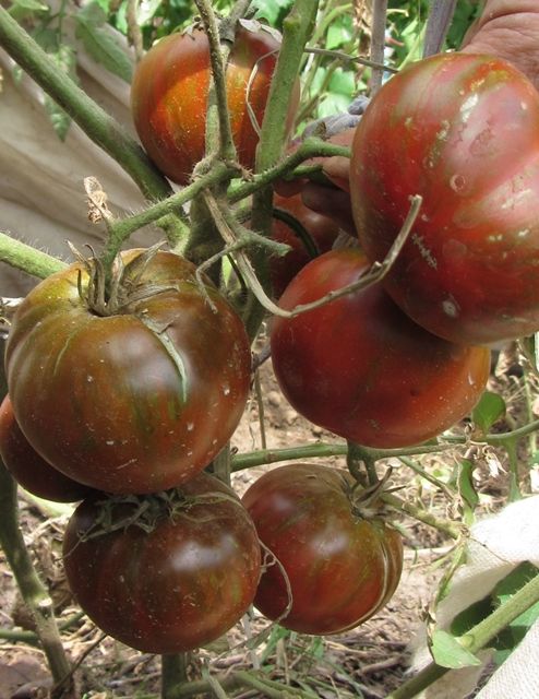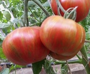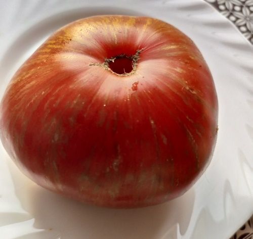 Высокорослый, среднеспелый сорт. Плоды плоскоокруглые, красно-коричневые, с зелеными и золотистыми полосками, вес 150-250 грамм, бордовые на разрезе. Вкус сладкий с небольшой кислинкой. Сорт салатный. В упак. 10 шт.