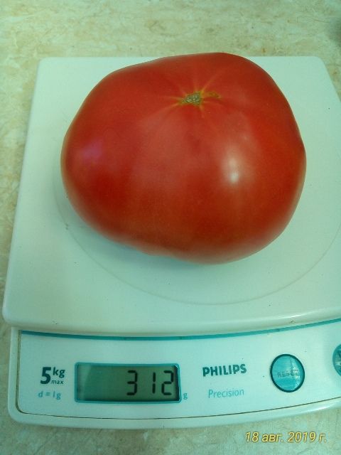 Высокорослый, среднеспелый сорт. Плоды округлые, красные, мясистые, вес 250-500 грамм. Вкус сбалансированный, со сладостью. Салатный сорт. В упаковке 10 штук семян.