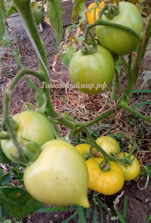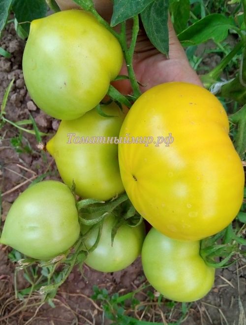 Детерминантный, высотой до 1 метра, поздний. Плоды округло-сердцевидные с носиком, светло-желто-зеленые, 100-150 гр., очень плотные, вкус с кислинкой. При хранении желтеют. Хранится 3-4 месяца после съема. В упак. 10 шт.