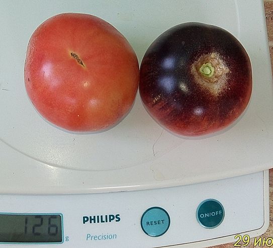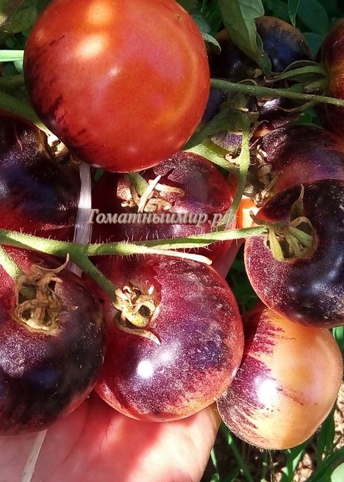 Высокорослый, ранний сорт. Вывели его из сортов Клубничный тигр и Баскью блю. Плоды округлые, розовые с черным, вес 30-50 грамм, мякоть розовая, сочная. Очень красивые. Долго висят на кусту, не переспевая. В упак. 10 шт.