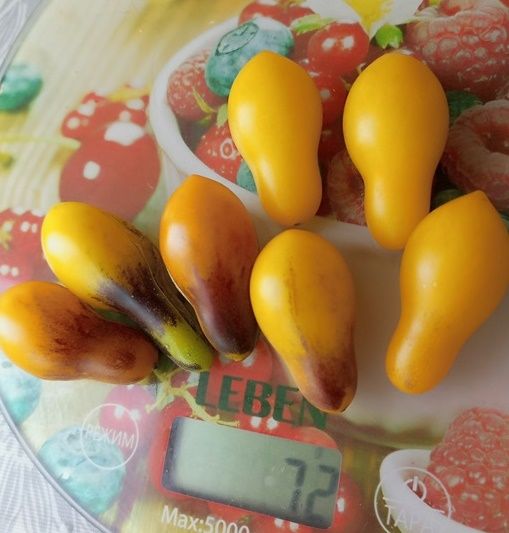 Индетерминантный, среднеранний сорт. Плоды грушевидной формы, желтые с антоциановыми синими плечиками, плотные, сладкие, вкусные. Вес 10-15 грамм. Подходят для употребления в свежем виде и консервирования. В упак. 10 шт.