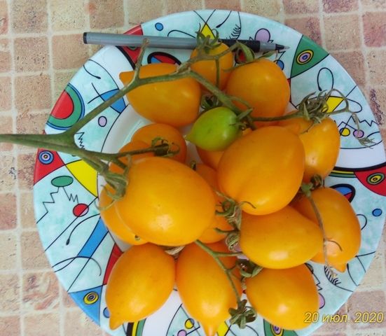 Высокорослый, среднеспелый сорт. Плоды сливки с носиком, по виду похожи на лимон, цвет плодов светло-желтый. В кисти завязывалось 15-20 плодов весом около 50 грамм. Плодоношение длительное. Отлично подходят для цельноплодного консервирования. В упак. 10 шт.