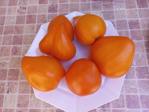 Высокорослый, среднеспелый очень урожайный сорт с длительным периодом плодоношения. Плоды сердцевидные, оранжевые. Мякоть плотная, мясистая, почти без сока, сладкая, вкусная. Вес 150-300 грамм. В упак 10 шт.