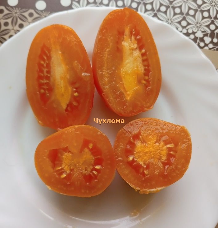 Индетерминантный, среднеспелый. Плоды удлиненные сливки, оранжевые, вес 80-100 грамм. Плоды плотные, мясистые, вкус сладкий. Универсальное назначение. В упак. 10 шт.