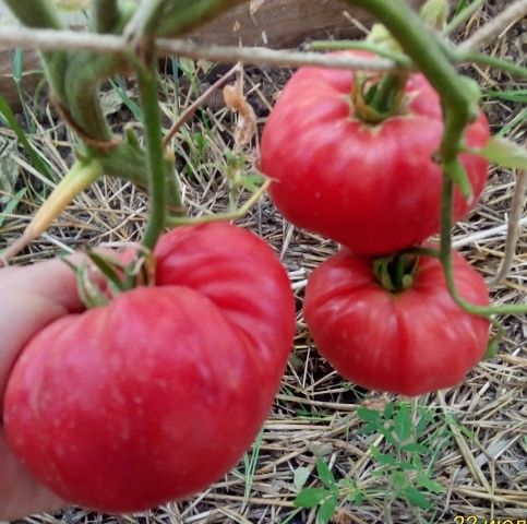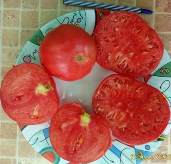 Среднеспелый, индетерминантный урожайный сорт. Плоды плоскоокруглые, малиново-розовые, крупные, 250-600 грамм, бифштексного типа, мясистые, вкус со сладостью и кислинкой. Отличный салатный сорт. В упак. 10 шт.