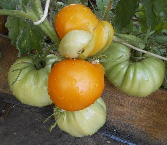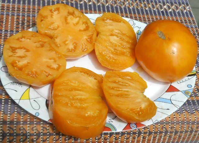 Высокорослый, среднеранний (на фото от 4 июля поспевшие). Плоды плоскоокруглые, чуть приплюснутые, очень крупные, желто-оранжевого цвета, весом 400-800 грамм, мясистые, сладкие, очень вкусные. В упаковке 10 штук.