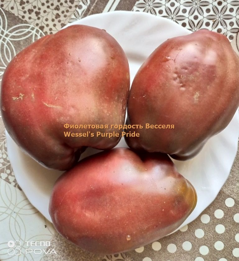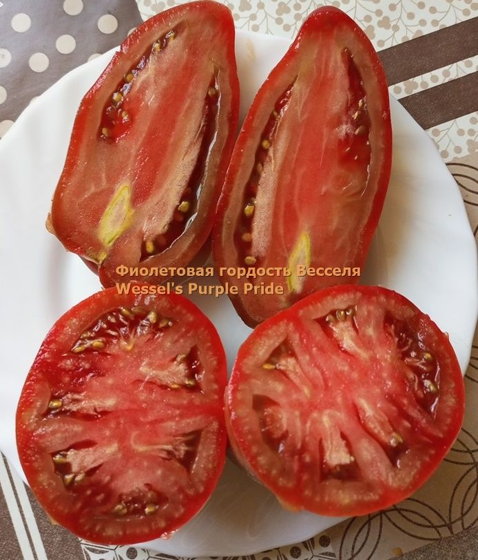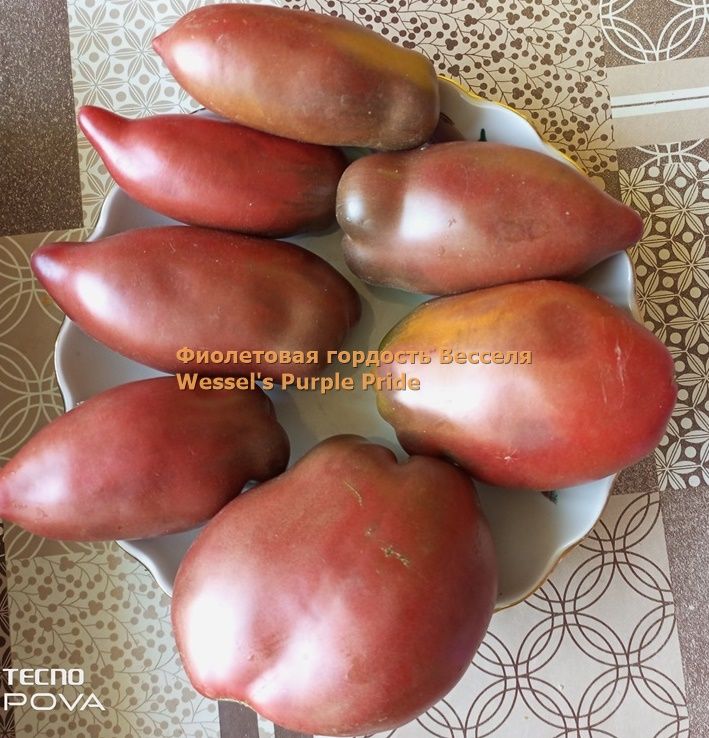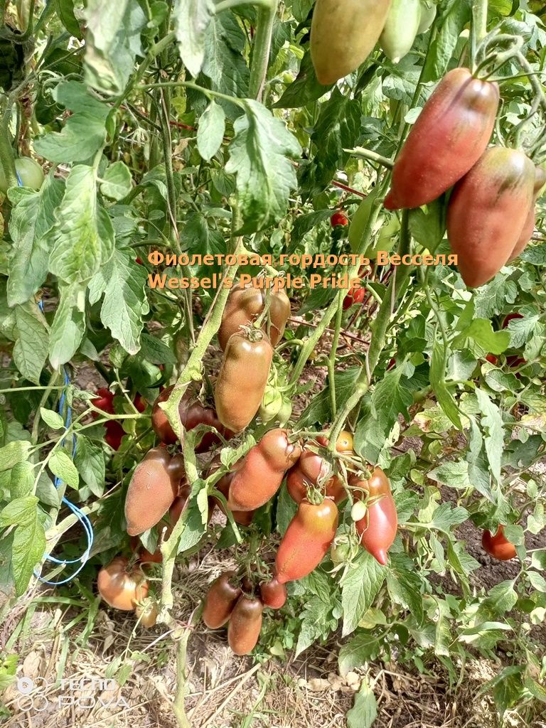 Индетерминантный, высокорослый, среднеспелый, урожайный сорт. Плоды удлиненные крупные сливы и сосульки, бордово-фиолетового цвета, на разрезе бордово-коричневые, весом от 150 до 350 грамм, вкус со сладостью. Сорт салатный, а также для консервации. В упак. 10 шт.