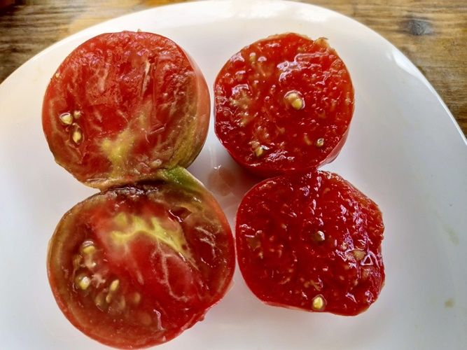 Индетерминантный, среднеспелый сорт. Плоды плоскоокруглые, пурпурно-фиолетовые, вес 200-300 грамм. Вкус со сладостью, пряный. Салатный сорт. В упак. 10 шт.