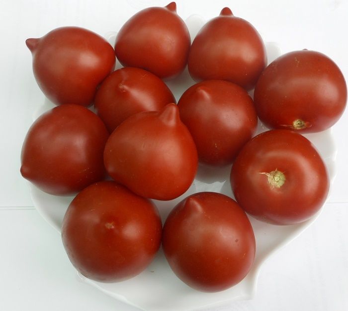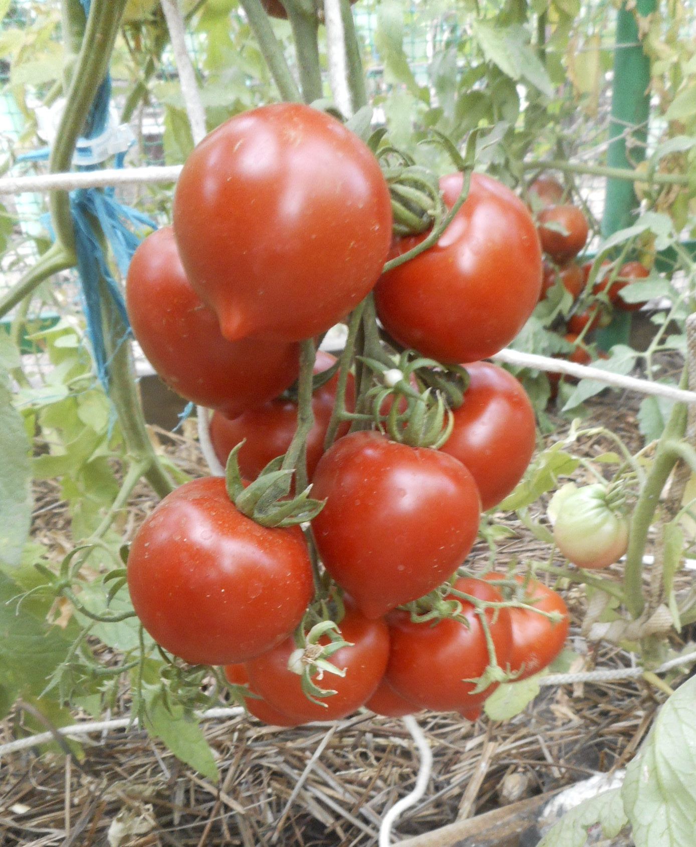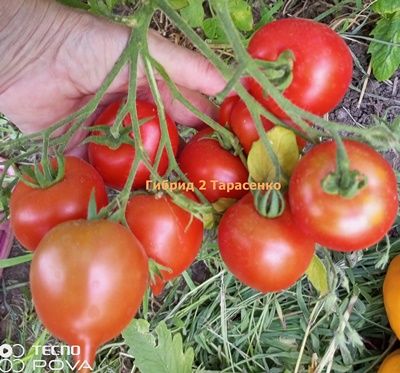 Сорт Тарасенко под названием Гибрид № 2, высокорослый, до 2,5 метров, среднеспелый. Плодовая кисть сложная, до 25 плодов на кисти. Плоды 70-90 грамм, красные, округлые с носиком. Очень урожайный, плодоношение растянутое, .хорошо лежат.