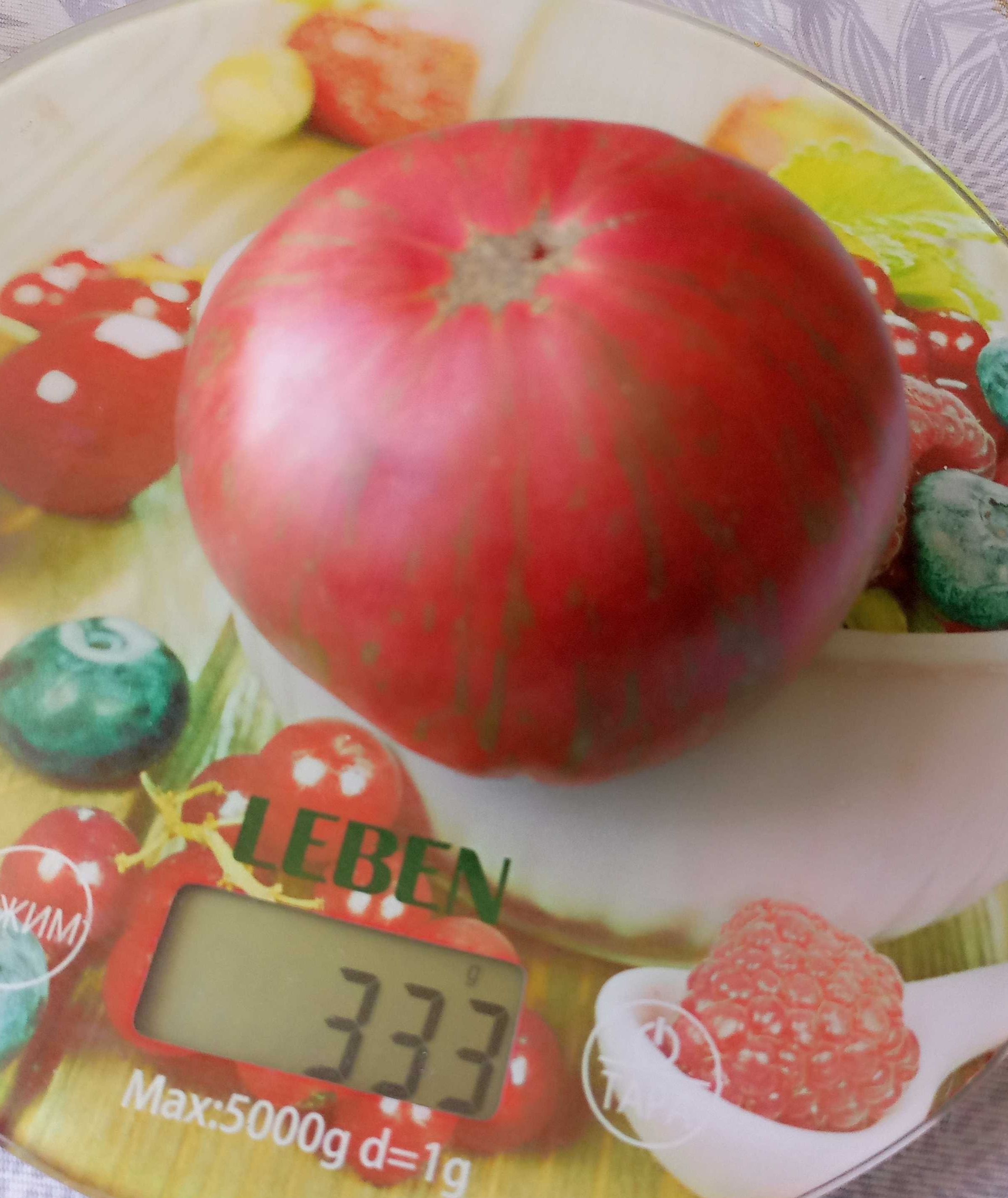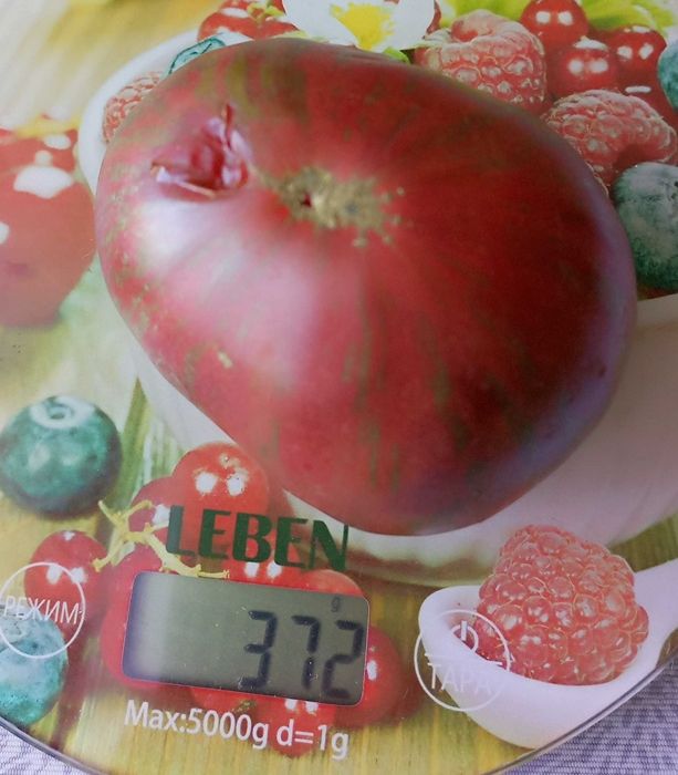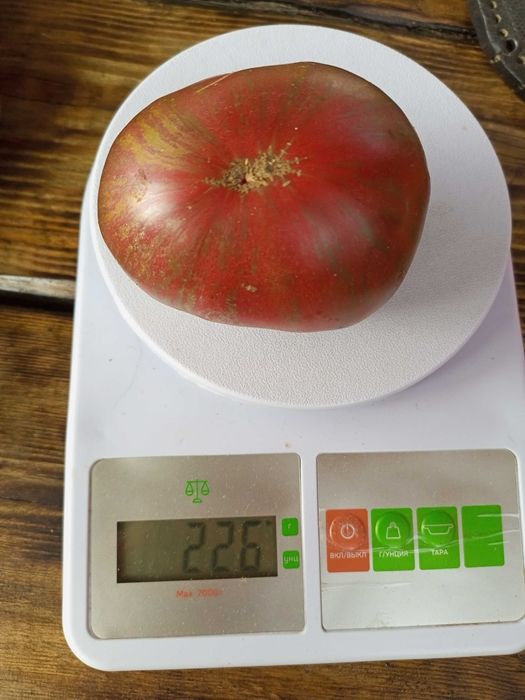 Детерминантный сорт, в ОГ высотой около 70 см, куст компактный. Среднеспелый с растянутым периодом плодоношения. Плоды плоскоокруглые, темно-малиново-пурпурные, с зелеными штрихами. Вкус яркий, с фруктовыми нотками, со сладостью и кислотой. Вес 150-300 грамм. В упак. 10 шт.