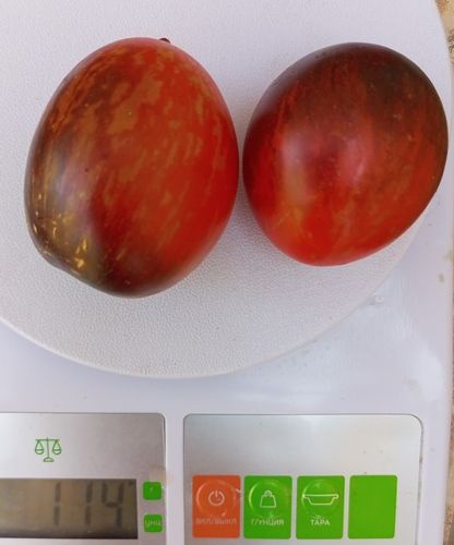 Урожайный среднеспелый сорт, куст высотой около 1 метра. Плоды округлые и яйцевидные, яркого окраса, красные, с золотистыми полосками и антоциановым напылением. На разрезе красные. Мякоть сочная, хорошего вкуса. В упак. 8 шт.