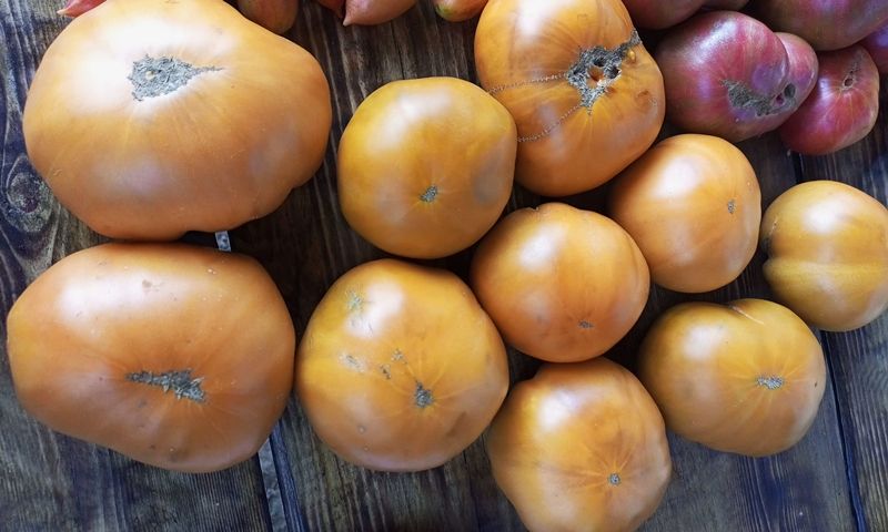 Детерминантный (0,7-1 метр высотой), среднеспелый урожайный сорт. Плоды плоскоокруглые, оранжево-коричневого цвета. Мякоть плотная, мясистая, мало сока и семян. Очень вкусные. В упаковке 10 штук.