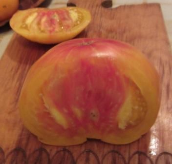 Индет, позднеспелый, 120-145 дней, для теплиц. Плоды плоскоокруглой формы, желто-розовые, мякоть розово-красная с желтым, весом 250- 600 грамм. Очень сладкие и вкусные. В упак. 8 шт. семян