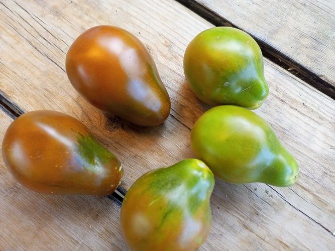 Индетерминантный, среднеспелый, урожайный сорт. Плоды грушки бордово-шоколадного цвета, 100- 150 грамм, вкус со сладостью. Универсальный сорт, можно использовать для свежего употребления и прекрасно подходит для цельноплодного консервирования. В упак. 10 шт.