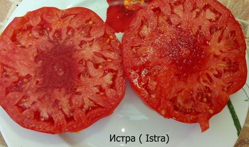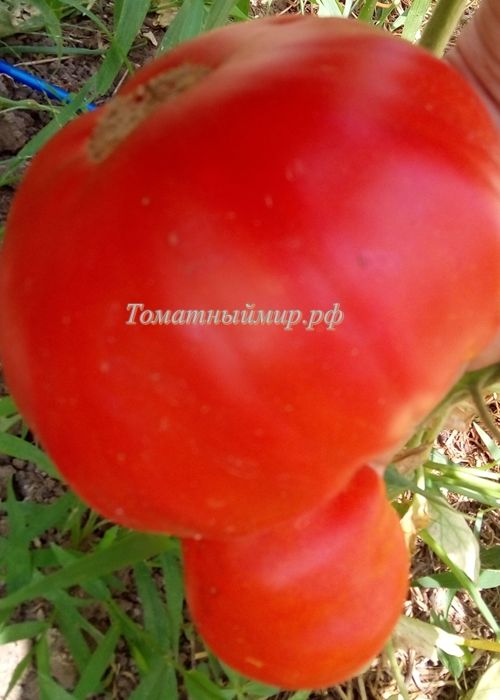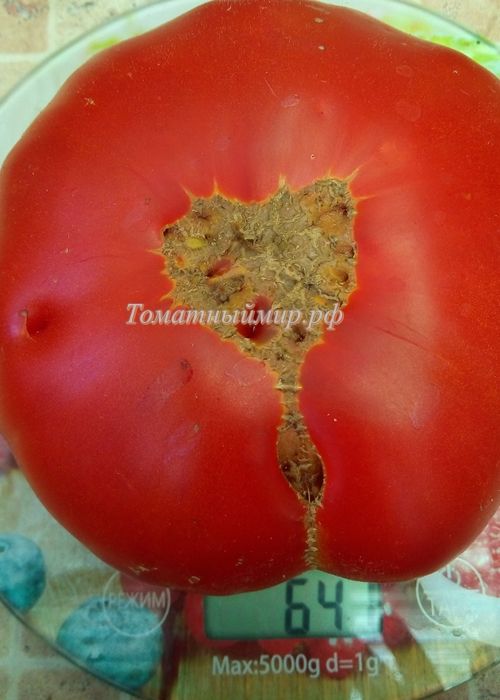 Индетерминантный, среднепоздний сорт. Плоды, плоскоокруглой, слегка приплюснутой формы, cо складочками у основания, крупные, 400-800 гр., красного цвета. Мякоть мясистая, плотная, со сладостью, отличного вкуса. Салатный сорт. В упак. 10 шт.