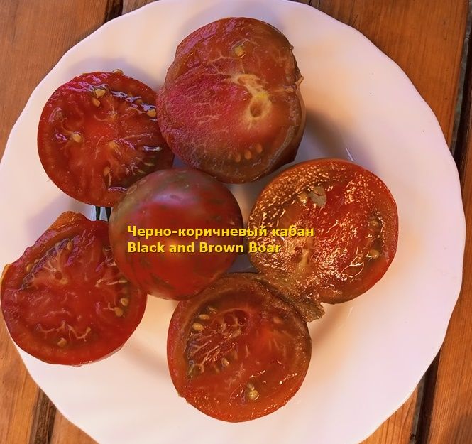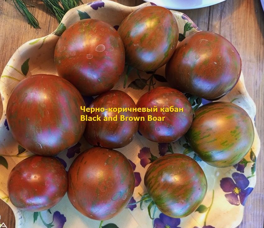 Среднеспелый, индетерминантный сорт, куст в ОГ около 1,5 метра. Плоды округлые, красно-коричневые с зелеными полосами, на разрезе темно-бордовые, сочные, вкус со сладостью. Вес около 100 грамм. В упак 10 шт.