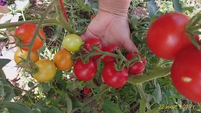 Индет, среднеранний. Плоды круглые томатики весом 40-60 грамм, красного цвета, сладкие на вкус, с достаточно плотной кожицей, на кусту висят долго, не растрескиваясь. Хороши для баночек на заготовки.
