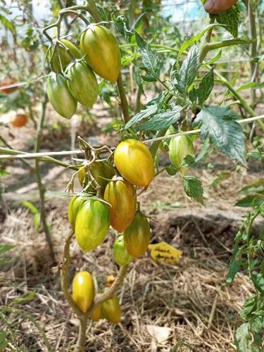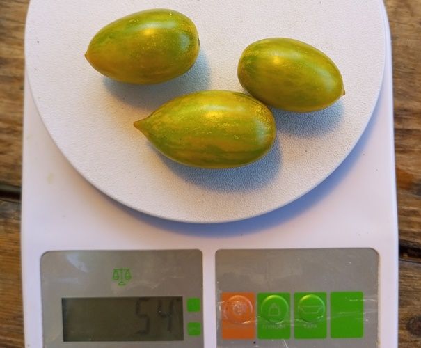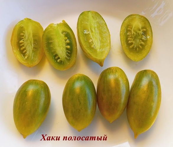 Индетерминантный, среднеспелый сорт. Плоды удлиненные сливки, оливкового цвета, с полосками темно-зеленого и розового цвета. Вес 20-40 грамм. Вкус со сладостью и небольшим фруктовым привкусом. Используются как в свежем виде, так и для заготовок. В упак. 12 шт.
