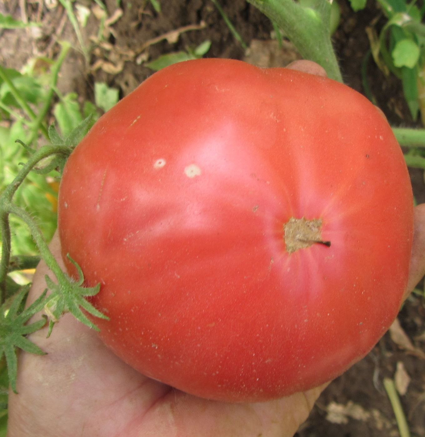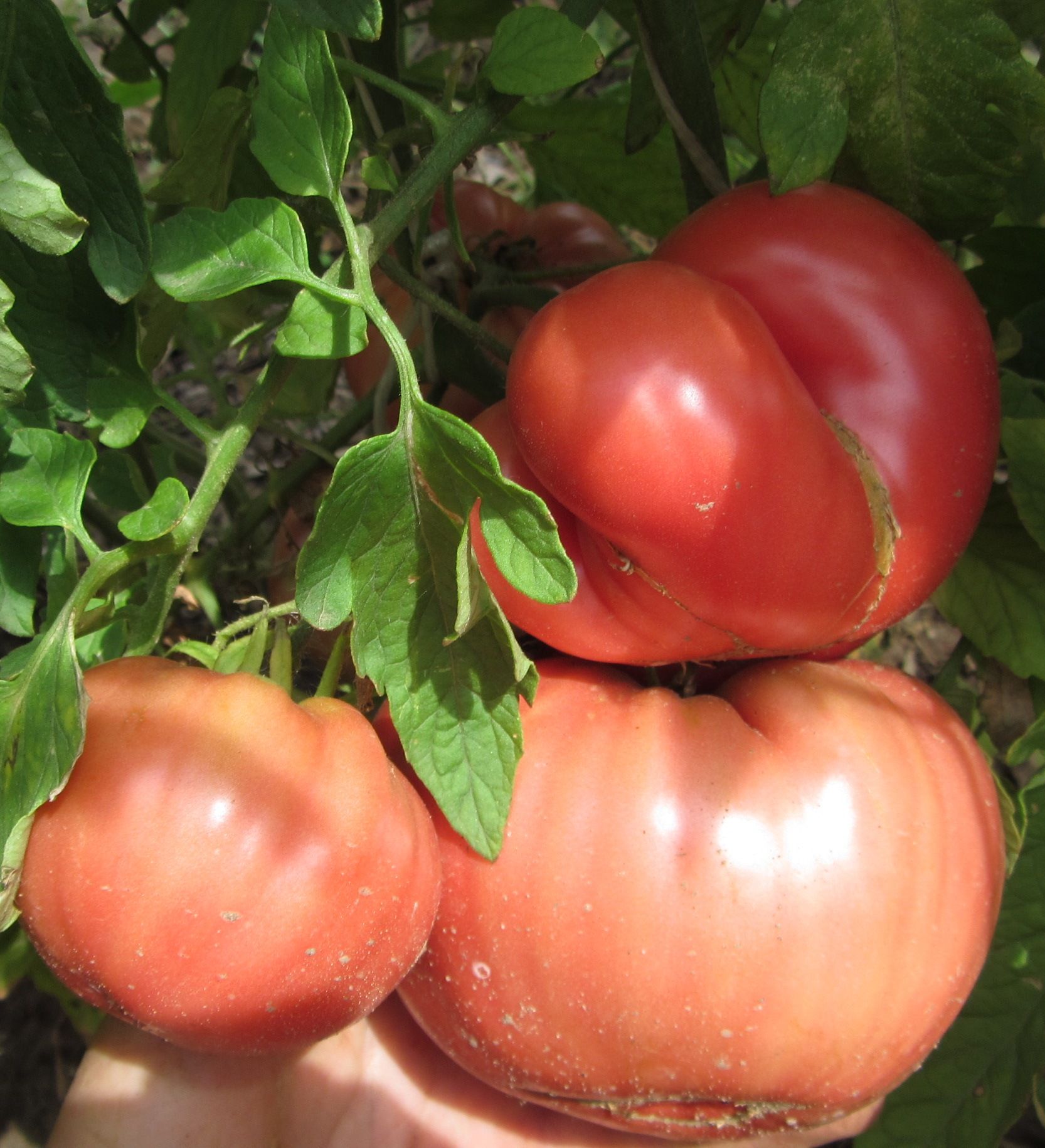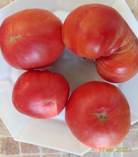 Высокорослый, среднеспелый сорт с картофельным листом. Плоды крупные розовые, плоскоокруглые с небольшими ребрами у основания, бифштексного типа. Вес 250-500 грамм. Мясистые, сочные, вкус со сладостью, и небольшой кислинкой. Вкусный салатный сорт. В упак. 10 шт.