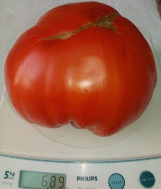 Очень энергичные растения, огромные плоды-бифштексы красного цвета, округлые, отличного качества, до 1,5 кг.