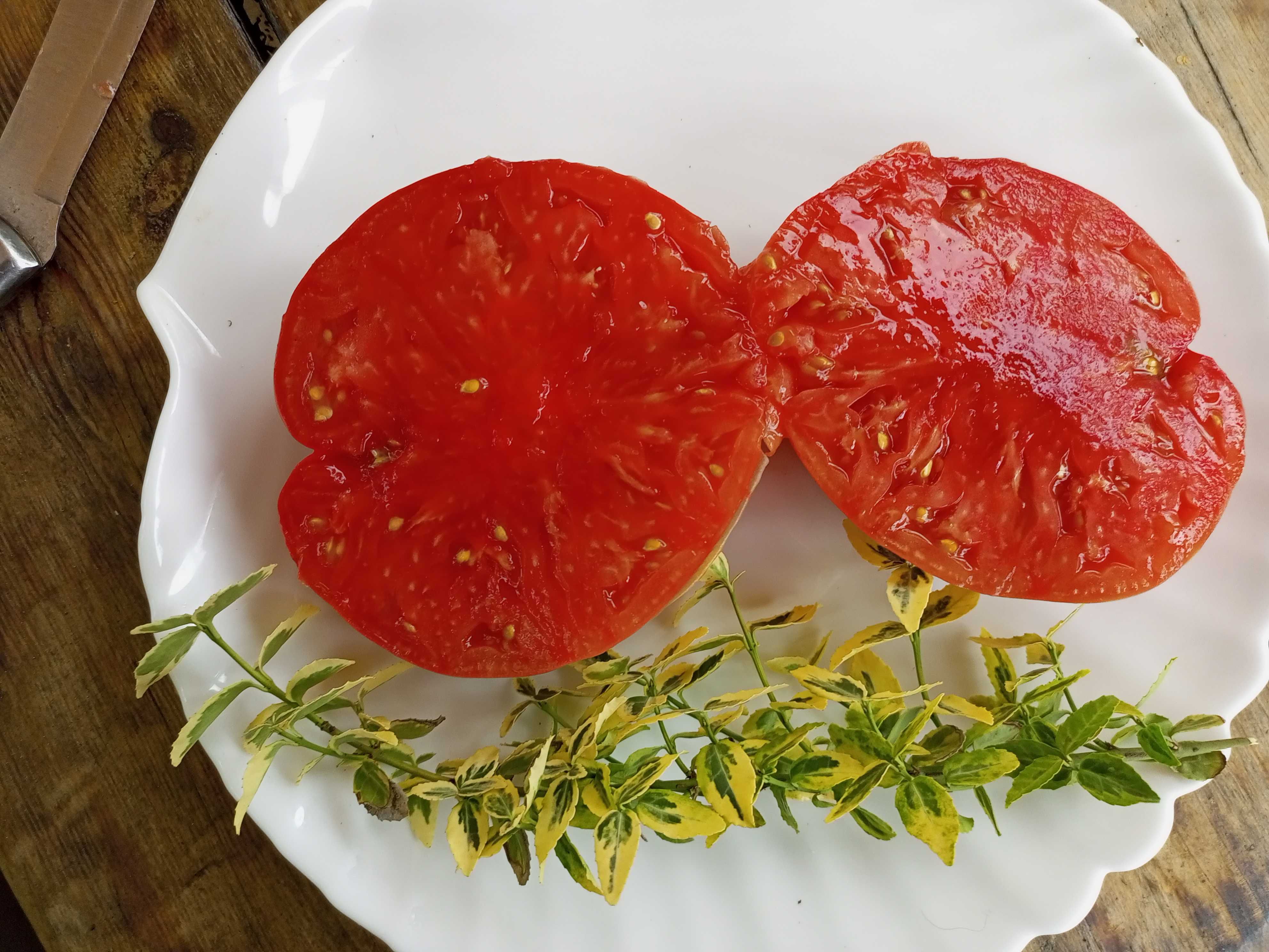 Среднеспелый, высокорослый сорт томата. Плоды плоскоокруглые, малиново-красные, бифштексного типа, вес 300-700 грамм. Мякоть сладкая, вкусная. Салатный сорт. В упак. 10 шт.