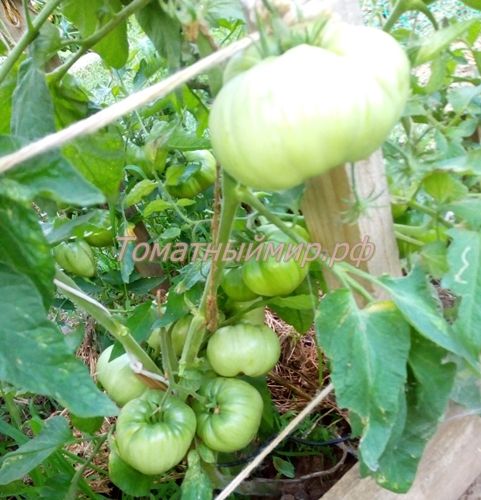 Индетерминантный, среднеспелый сорт. Плоды плоскоокруглые, с чуть присборенными плечиками, розово-красные, крупные, 400-800 грамм. Мясистые, вкус со сладостью. Отличный салатный сорт. В упак. 10 шт.