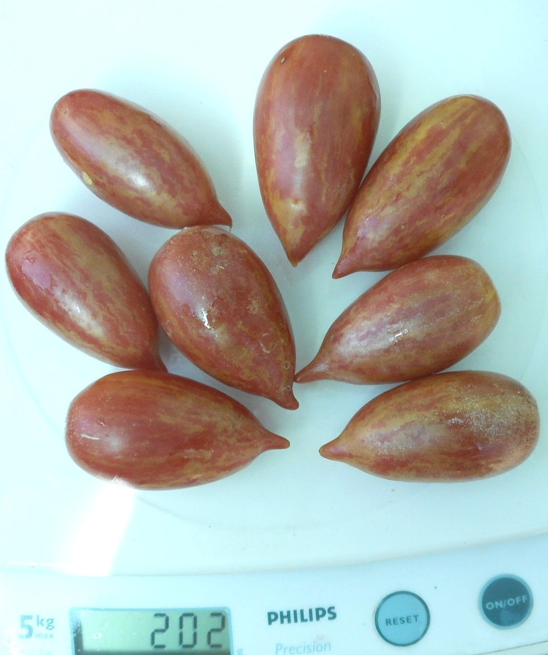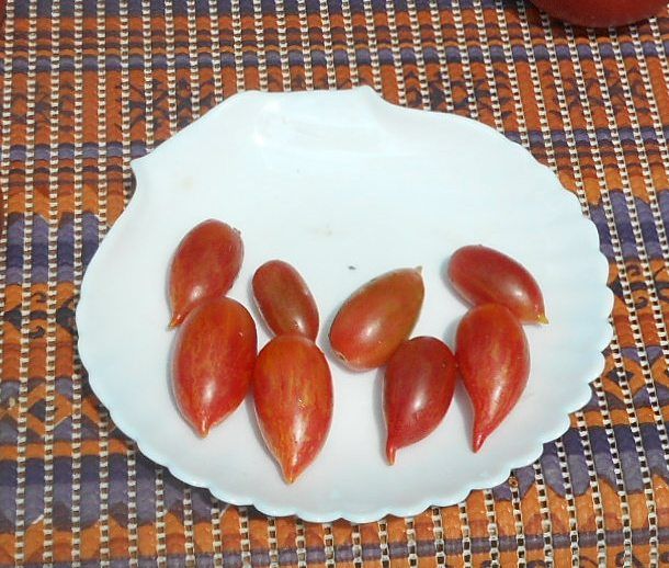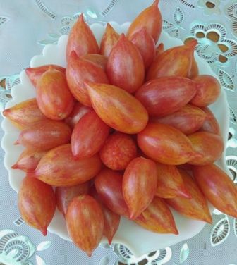 Среднеспелый, детерминантный сорт томата. Плоды сливки с носиком, весом 25- 40 грамм, розовые, с желтыми полосками и пятнами. Урожайный и вкусный. В упаковке 10 шт.