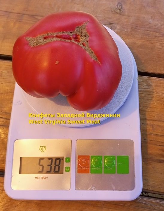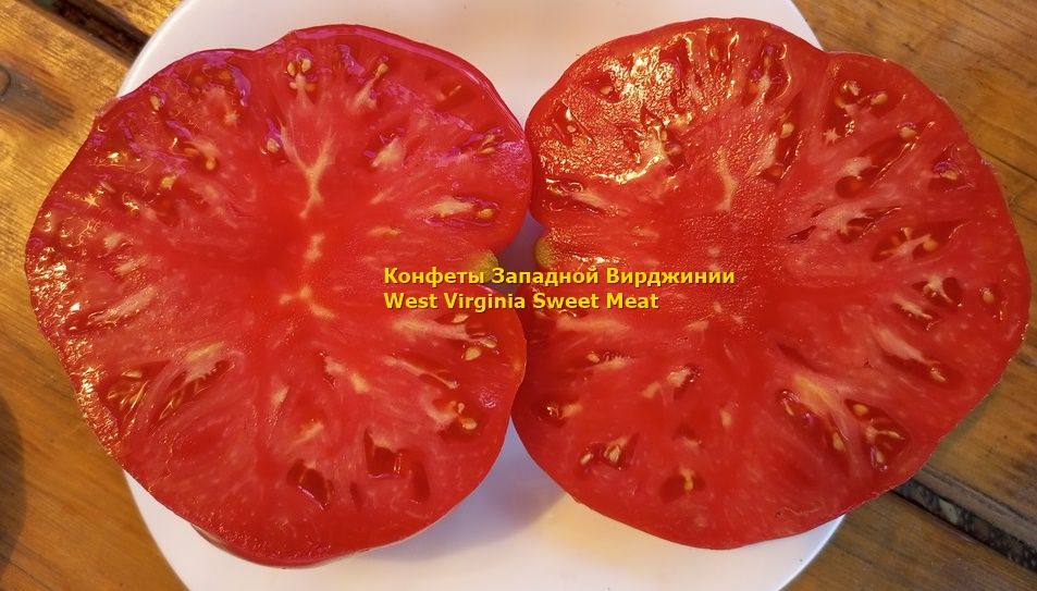 Старинный сорт. Семена изначально получены от Пэтти Браун из Огайо. Мать Пэтти, которая живет в Западной Вирджинии, купила рассаду у амишей, питомник в Hidden Valley, Marsdale, штат Пенсильвания, и Патти сохранила семена из этих плодов. Пэтти назвал его "сладкое мясо" и разделяет семена с ее садоводческих друзьями через форум Tomatoville и сад Web в начале 2000-х годов.В названии «Западная Вирджиния» была добавлена ??к названию сорта позже, чтобы указать происхождение помидора. Плоды большие, немного взъерошенные с блестящей кожицей, как правило, весят 1- 2 фунта. Вкус выдающийся как богатый, так и сладкий. Большой урожай на здоровых, инд. растениях с обычным типом листа. Созревание от 83 дня.
