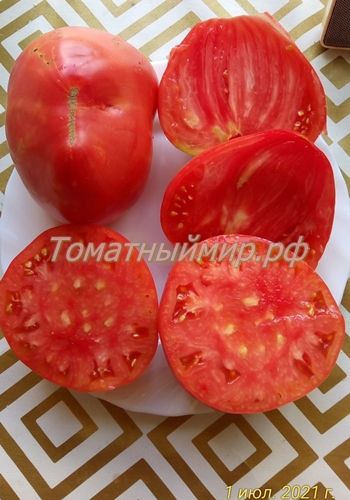 Высокорослый, среднеспелый сорт. Плоды малиново-красные сердцевидные, мясистые, плотные, сладкие, с малым количеством сока. Вес 200-400 грамм. Салатный сорт. В упак. 10 шт.