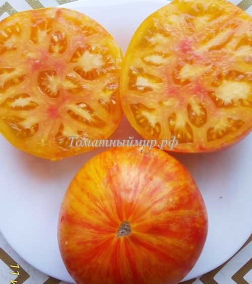 Высокорослый, среднеспелый сорт. Плоды плоскоокруглые, очень красивой и яркой расцветки, желто-оранжевые с красными полосками, вес 150-400 грамм, на вкус сладковатые, с фруктововым привкусом. В упак. 8 шт.